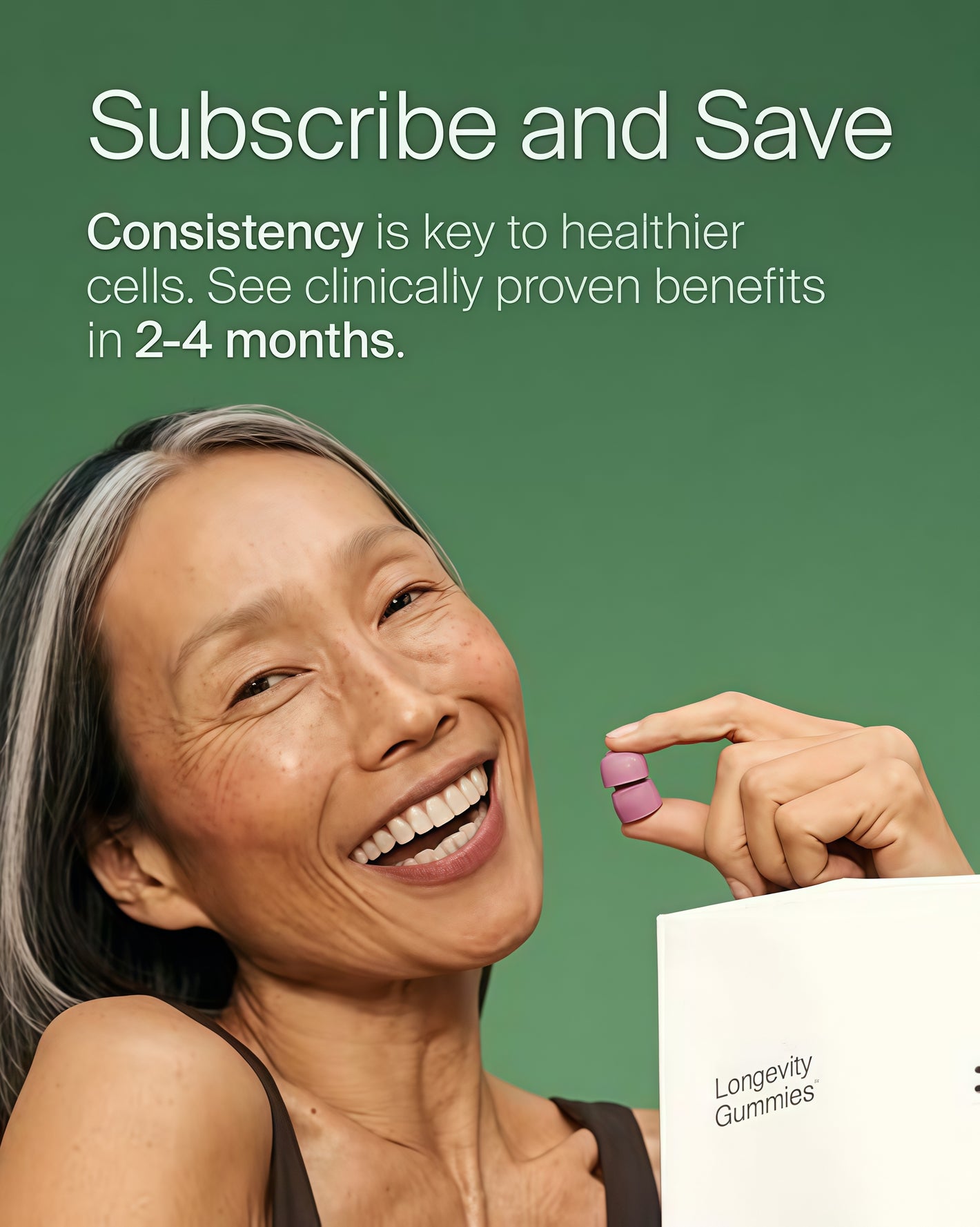 The only clinically proven Urolithin A gummy. Shown to improve cellular energy and muscle strength.*